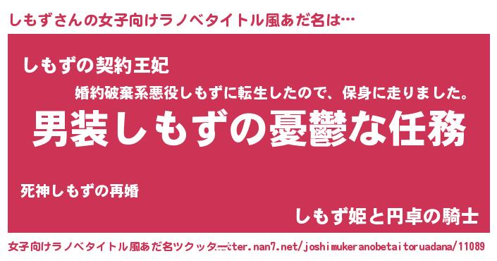 | 男性向けラノベタイトル風あだ名 | 『冴えないしもずの育てかた』 |