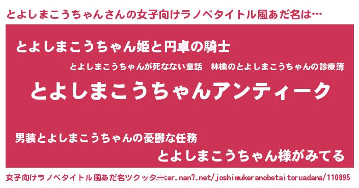 | 伝説のあだ名 | 『不死鳥の竜騎士とよしまこうちゃん』 |