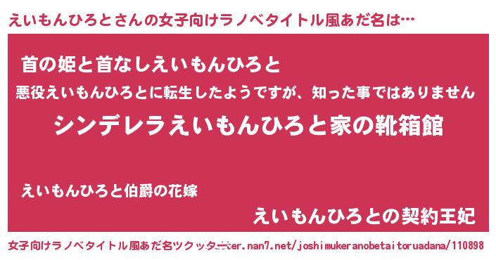| 意味不明あだ名 | 『永久保存えいもんひろと』 |