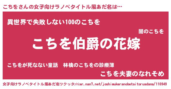 | 男性向けラノベタイトル風あだ名 | 『やはりこちをの青春ラブコメはまちがっている 』 |