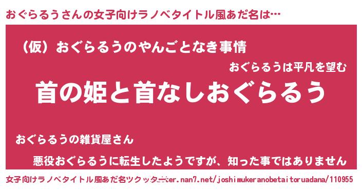 | 男性向けラノベタイトル風あだ名 | 『はたらくおぐらるうさま!』 |