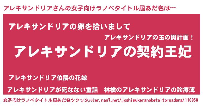| 意味不明あだ名 | 『永久保存アレキサンドリア』 |