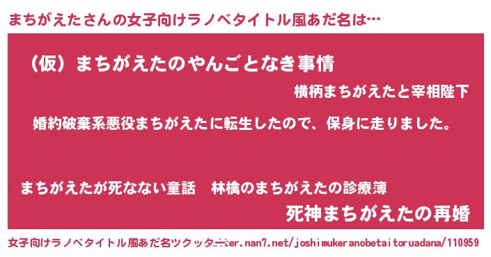 | 男性向けラノベタイトル風あだ名 | 『転生したらまちがえただった件』 |