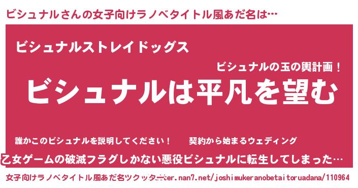 | 胡散臭い通販商品みたいなあだ名 | 『信頼と実績のサプリメント…その名も「ビシュナル」』 |