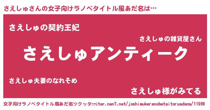| 意味不明あだ名 | 『自称さえしゅ』『永久保存さえしゅ』 |