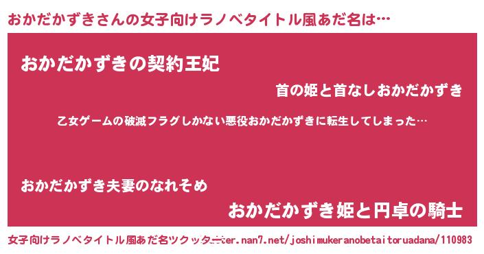 | 男性向けラノベタイトル風あだ名 | 『この素晴らしい世界におかだかずきを!』 |