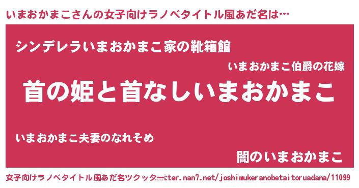 | 男性向けラノベタイトル風あだ名 | 『はたらくいまおかまこさま!』 |