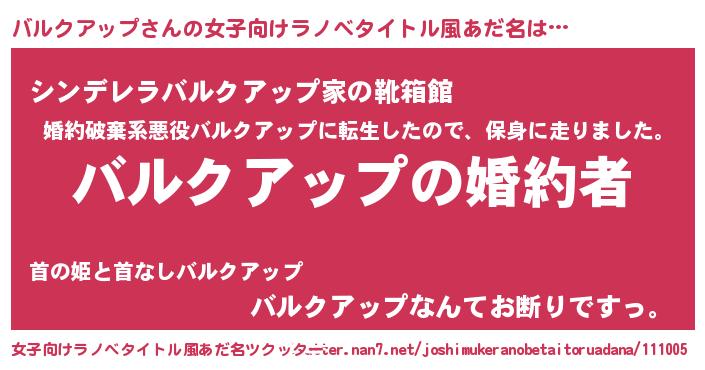 | 胡散臭い通販商品みたいなあだ名 | 『運命の人と巡り会える高級そうな壺…その名も「バルクアップ」』 |