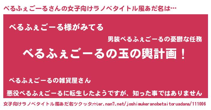 | 伝説のあだ名 | 『覚醒した遊び人べるふぇごーる』 |