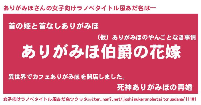 | 男性向けラノベタイトル風あだ名 | 『やはりありがみほの青春ラブコメはまちがっている 』 |
