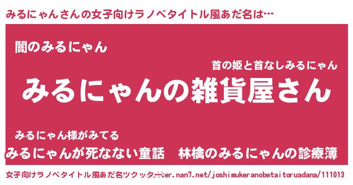 | 意味不明あだ名 | 『みるにゃんフォーエバー』 |
