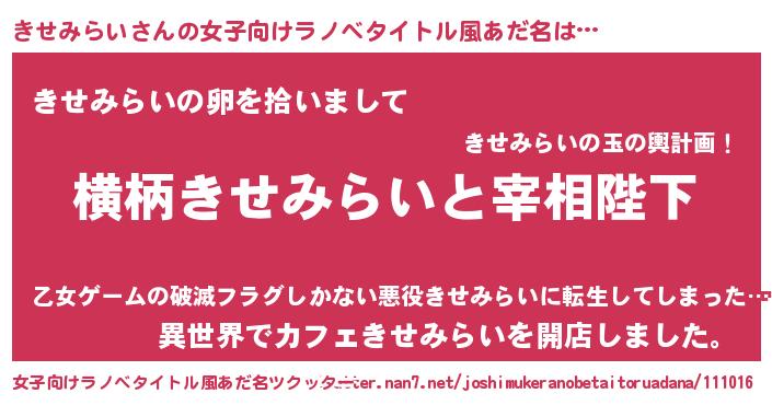 | 欧米人風あだ名 | 『アンジェラ・きせみらい』 |