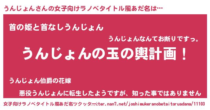 | 男性向けラノベタイトル風あだ名 | 『転生したらうんじょんだった件』 |