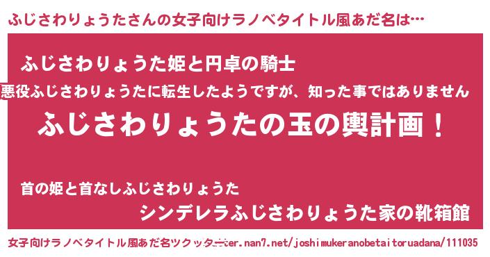 | 男性向けラノベタイトル風あだ名 | 『ふじさわりょうた~年齢イコール彼女いない歴の魔法使い~』 |