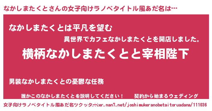 | 男性向けラノベタイトル風あだ名 | 『なかしまたくとに滅ぼされるだけの簡単なお仕事です』 |