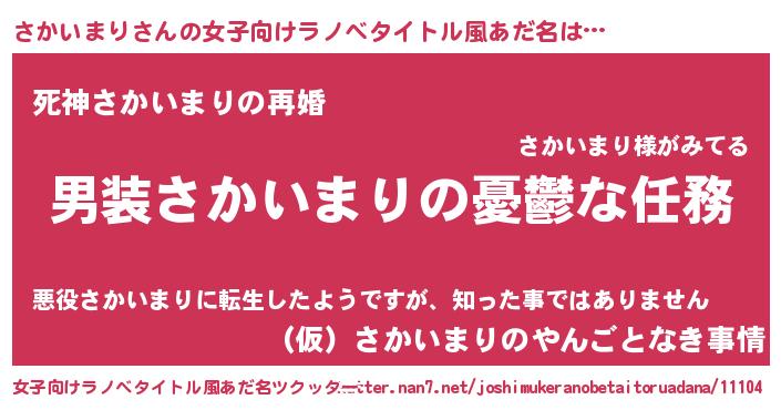 | 男性向けラノベタイトル風あだ名 | 『うちのさかいまりが世界を掌握している!』 |