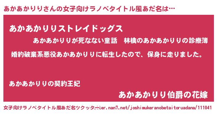 | 男性向けラノベタイトル風あだ名 | 『アカアカリリスレイヤー』 |