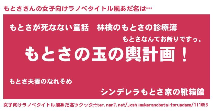 | 男性向けラノベタイトル風あだ名 | 『転生したらもとさだった件』 |