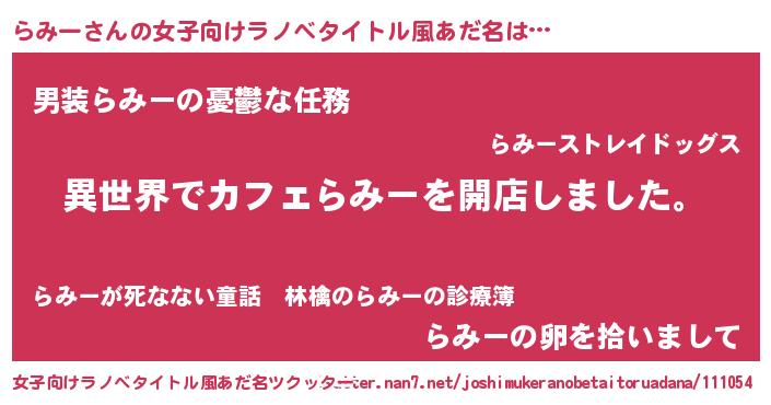 | 意味不明あだ名 | 『永久保存らみー』『自称らみー』 |