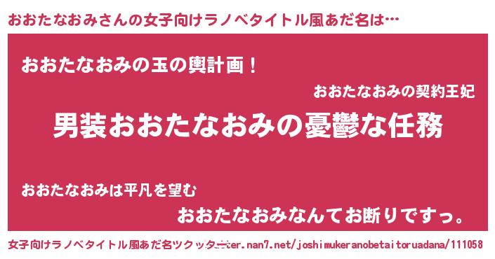 | 男性向けラノベタイトル風あだ名 | 『うちのおおたなおみが世界を掌握している!』 |