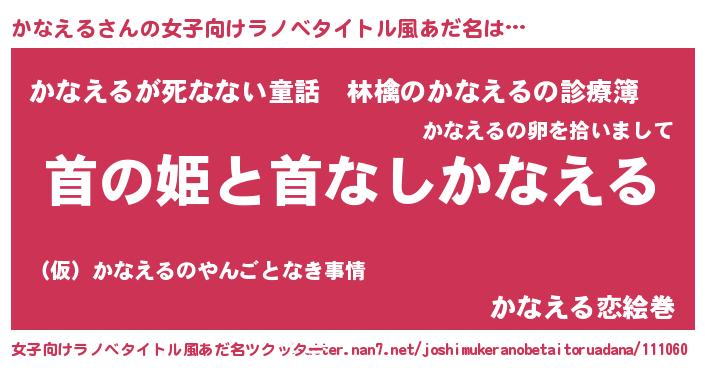 | 男性向けラノベタイトル風あだ名 | 『はたらくかなえるさま!』 |