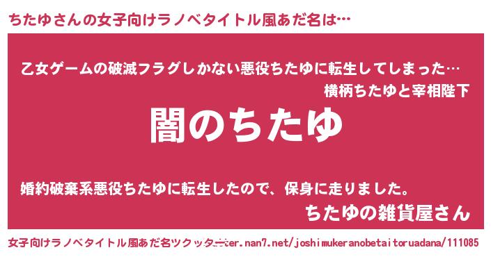 | 男性向けラノベタイトル風あだ名 | 『Re:ちたゆから始める異世界生活』 |