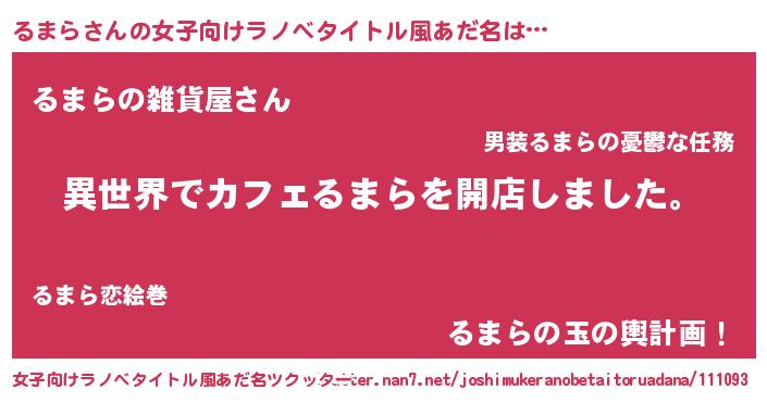 | 男性向けラノベタイトル風あだ名 | 『誰もが恐れるあのるまらが、ぼくの専属メイドになるようです。』 |