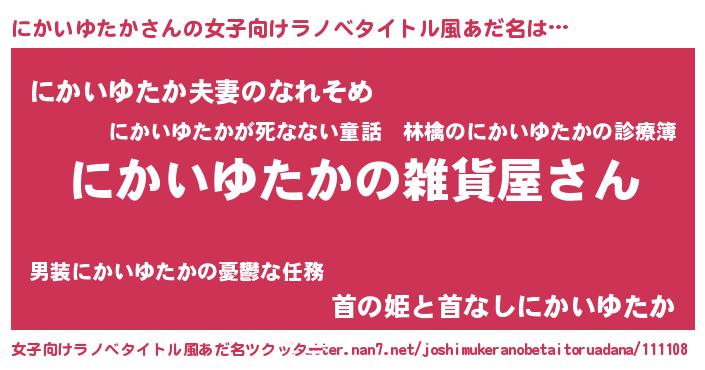 | 男性向けラノベタイトル風あだ名 | 『やはりにかいゆたかの青春ラブコメはまちがっている 』 |