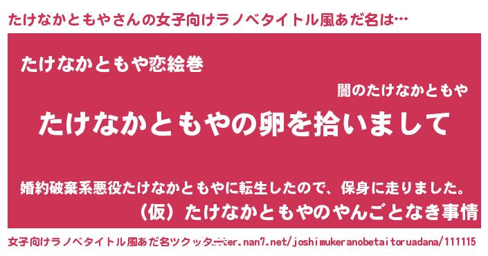 | 男性向けラノベタイトル風あだ名 | 『ダンジョンにたけなかともやを求めるのは間違っているだろうか』 |
