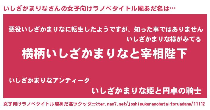| 意味不明あだ名 | 『住所不定無職いしざかまりな(59歳)』 |