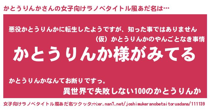 | 男性向けラノベタイトル風あだ名 | 『かとうりんかの嫁は女の子じゃないと思った?』 |
