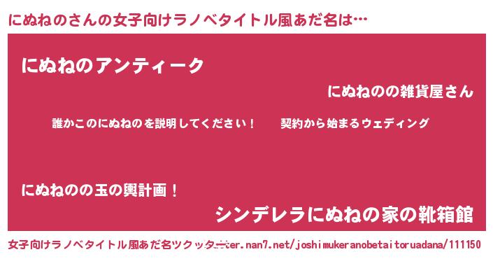 | 男性向けラノベタイトル風あだ名 | 『ニヌネノアートオンライン』 |