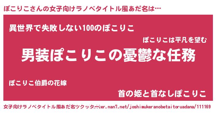 | 男性向けラノベタイトル風あだ名 | 『うちのぽこりこが世界を掌握している!』 |