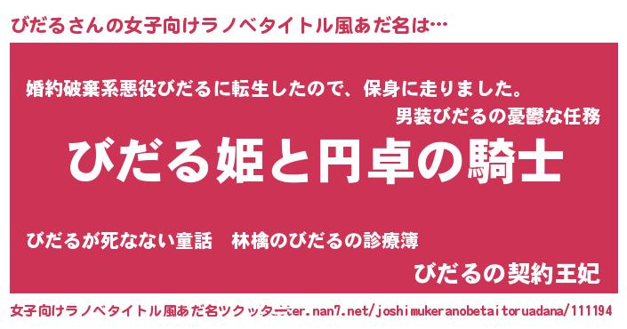 | 胡散臭い通販商品みたいなあだ名 | 『モテモテ間違いなし水晶球…その名も「びだる」』 |