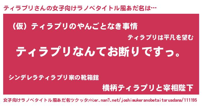| 男性向けラノベタイトル風あだ名 | 『魔法科高校のティラプリ』 |