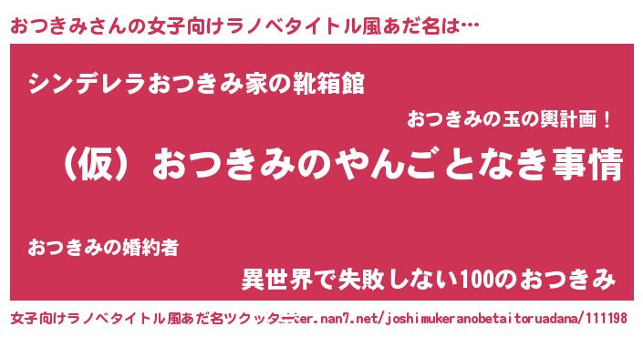 | 男性向けラノベタイトル風あだ名 | 『おつきみの憂鬱』『緋弾のオツキミ』 |