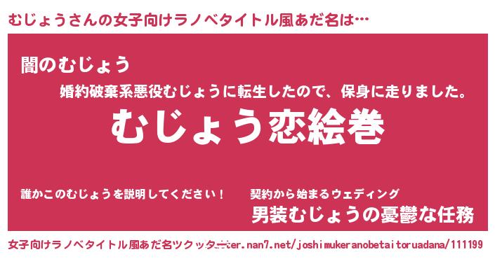 | 男性向けラノベタイトル風あだ名 | 『おまえをオタクにしてやるから、俺をむじょうにしてくれ! 』 |
