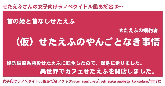 | 胡散臭い通販商品みたいなあだ名 | 『必ず成功するブレスレット…その名も「せたえふ」』 |