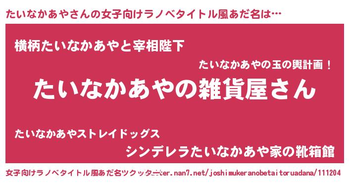 | 男性向けラノベタイトル風あだ名 | 『やはりたいなかあやの青春ラブコメはまちがっている 』 |
