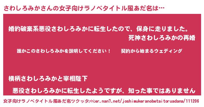 | 男性向けラノベタイトル風あだ名 | 『サワシロミカアートオンライン』 |