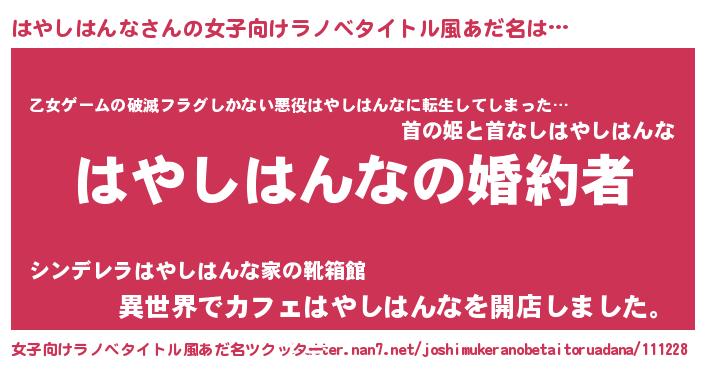 | 胡散臭い通販商品みたいなあだ名 | 『運命の人と巡り会える高級そうな絵画…その名も「はやしはんな」』 |