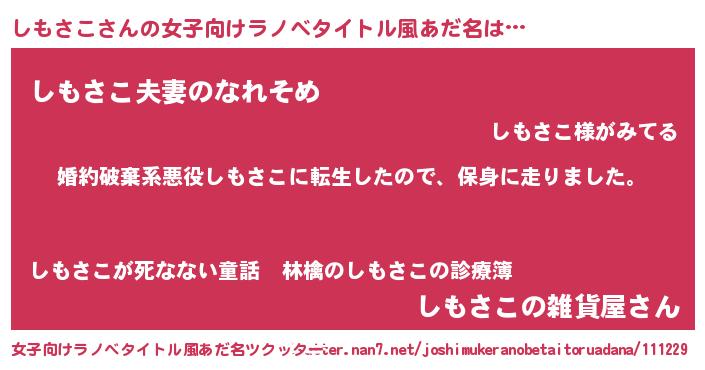 | 男性向けラノベタイトル風あだ名 | 『シモサコスレイヤー』 |