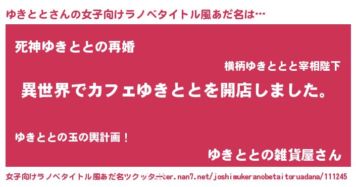 | 男性向けラノベタイトル風あだ名 | 『誰もが恐れるあのゆきととが、ぼくの専属メイドになるようです。』 |