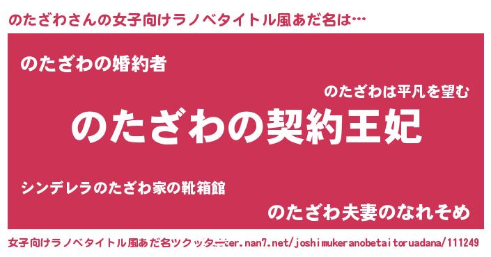 | 男性向けラノベタイトル風あだ名 | 『のたざわという概念が存在しない退屈な世界 』 |