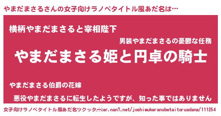 | 男性向けラノベタイトル風あだ名 | 『ヤマダマサルアートオンライン』 |