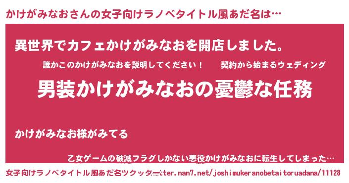 | 胡散臭い通販商品みたいなあだ名 | 『来世でも幸せになれる水素水…その名も「かけがみなお」』 |