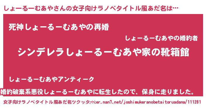 | 胡散臭い通販商品みたいなあだ名 | 『100人中100人が認めたイリジウム磁石…その名も「しょーるーむあや」』 |