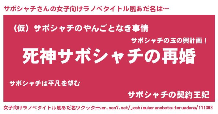 | 男性向けラノベタイトル風あだ名 | 『ノーゲーム・ノーサボシャチ』 |