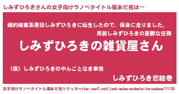 | 男性向けラノベタイトル風あだ名 | 『やはりしみずひろきの青春ラブコメはまちがっている 』 |
