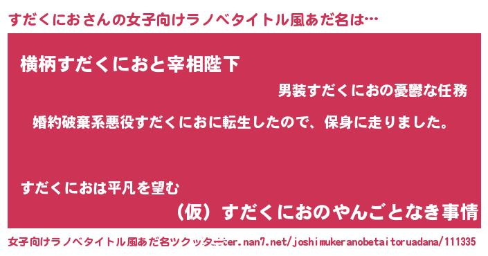 | 男性向けラノベタイトル風あだ名 | 『スダクニオスレイヤー』 |